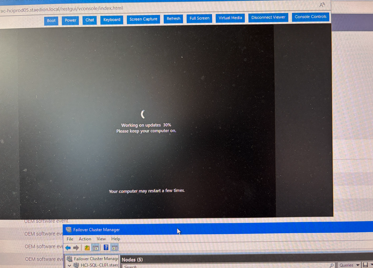 I quickly learned that CAU runs weren’t an option for updating the clusters, so everything had to be done manually. That gave us full control over the update process and enough time for the nodes to resilver.